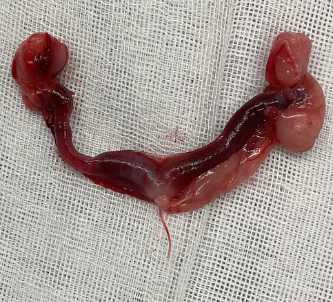 下に同じ犬種の卵巣・子宮の写真を添付します。